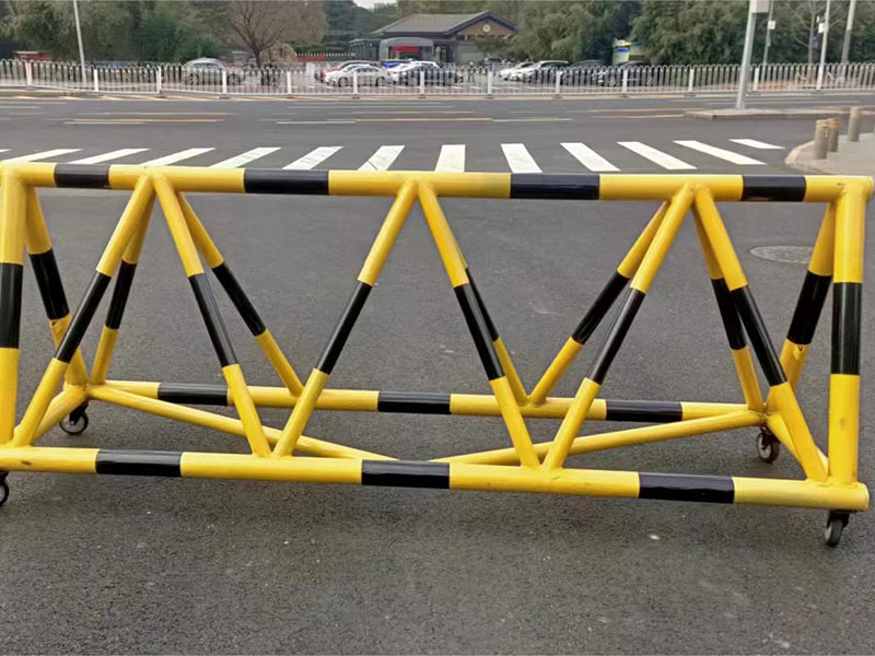 就是用來非常時期,眾人沖突及車輛闖卡攔車使用的鐵質護欄,采取分別隔離人員及車輛的一種形式,形成隔離安全緩沖區。拒馬為可移動路障,拒馬為三角體柵欄式,可靈活推拉移動,底部焊接萬向剎車輪方便轉向移動。拒馬管材材質一般為 A3鋼、鍍鋅、表面除銹噴漆或烤漆處理,防治陽光暴曬、雨淋、不生銹。
