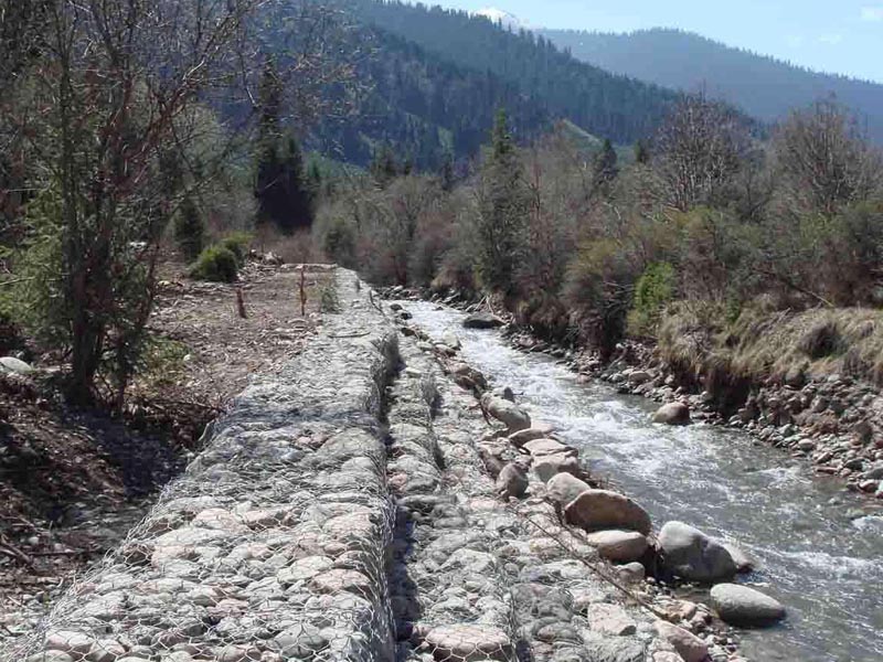 生態格賓網是將抗腐耐磨高強的低碳高鍍鋅鋼絲或5%鋁-鋅稀土合金鍍層鋼絲(或同質包覆聚合物鋼絲),由機械將雙線絞合編織成多絞狀、六邊形網目的網片,其雙線鉸合部分的長度應不小于5cm,以不破壞鋼絲的防護鍍層。生態格網可根據工程設計要求組裝成箱籠,并裝入塊石等填充料后連接成一體,用做堤防、路基防護等工程的新技術。